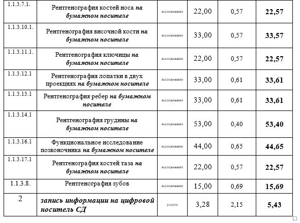 Прейскурант на платные медицинские услуги для граждан РБ