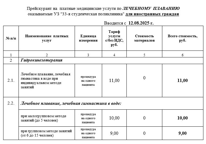 • Прейскурант на платные медицинские услуги для граждан РБ